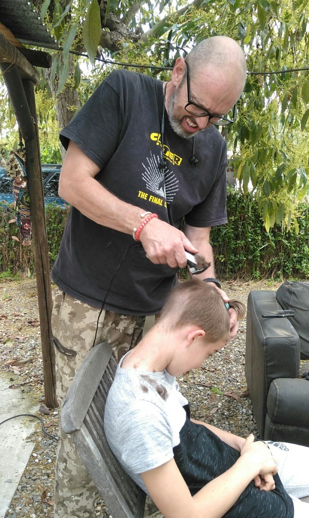 Meanwhile after son hacked at his own hair last week just so he could see, decided it was time to get the clippers out, pin him down and give him a DIY Lionel Blair haircut.