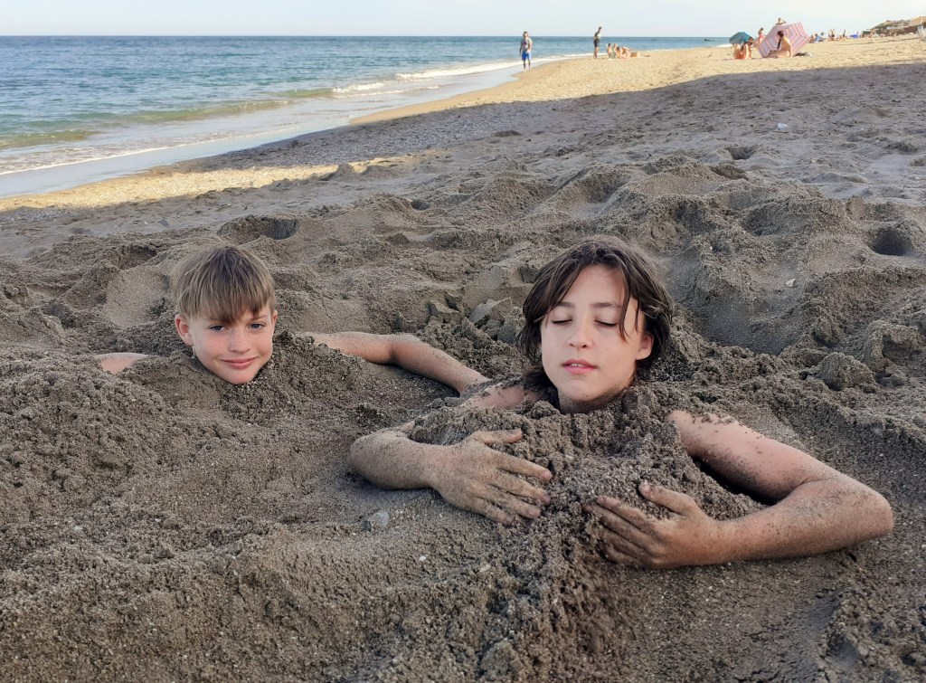 Not too busy either and not as regulated as I thought it would be. There are rules saying no footballs balls, bat and balls or inflatables and although I didn’t see many (there were a few), nothing seemed to be policed. Less intense than I imagined it would be. The boys had no need for any entertaining or toys. They literally spent 3 hours digging a hole with their hands, flip flops and a Pringle container (improvisation at its best). Then we buried them in it.